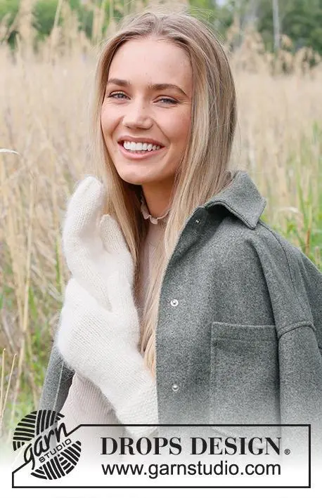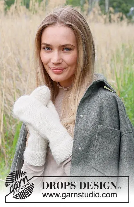 Strikkede vanter i DROPS Karisma og DROPS Kid-Silk. Arbejdet strikkes i glatstrik og perlestrik.