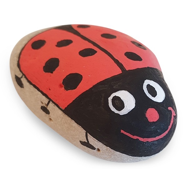 - Når motivet er færdigt, kan du eventuelt afslutte med et lag stenlak. Lakken får stenen til at skinne, og derudover kan den opbevares udenfor. Jo flere lag lak du påfører, jo mere skinnende bliver stenen.
