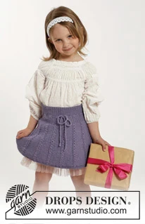 Strikket nederdel med hulmønster i DROPS Alpaca. Til børn i str 2 - 10 år.