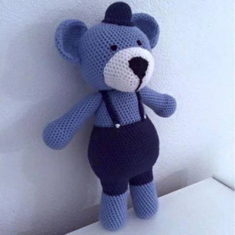 Hr. Bjørn: Let læselig og detaljeret hækleopskrift på Hr. Bjørn. Hr. Bjørn bliver ca. 18 cm høj. En sød lille bjørn med selebukser og bowlerhat.