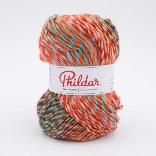 Mikado fra Phildar er et farveskiftende garn med en blød og slidstærk sammensætning af uld og akryl. Det færdige resultat får et unikt udtryk med levende farvespil.