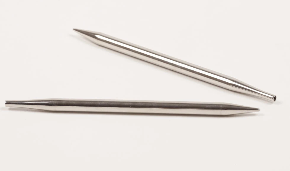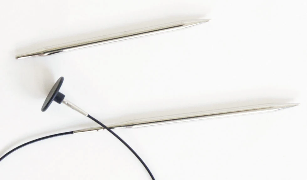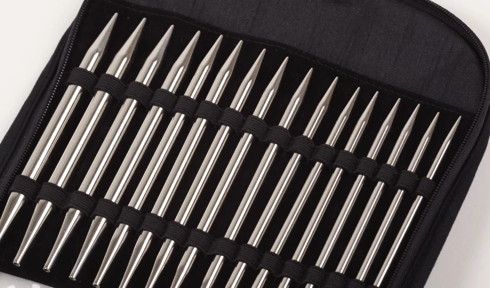 Tag dit strikketøj med dig overalt sammen med dette skønne sæt med udskiftelige pinde i messing og nikkel.