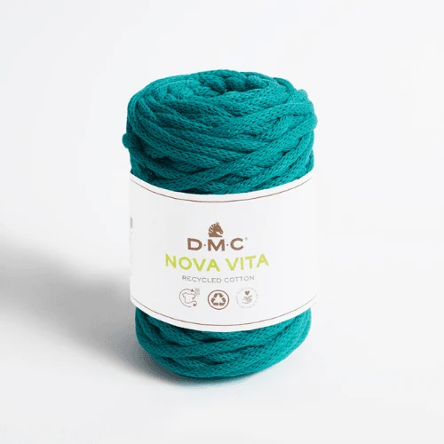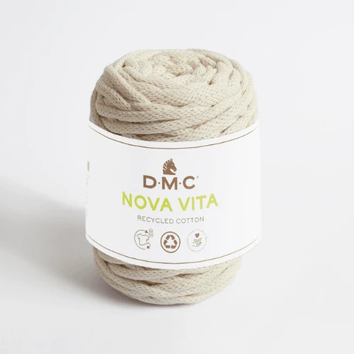 Nova Vita 12 fra DMC er et lækkert vævet garn med en rørformet struktur og 4 mm tykkelse, der egner sig særligt til forskellige former for dekorativt interiør, såsom kurve, tæpper, pudebetræk, lampeskærme, etc.