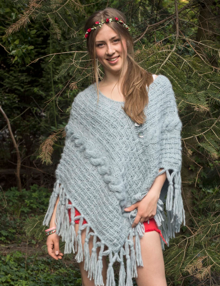 105 Flettestrikket firkantponcho med løs hals