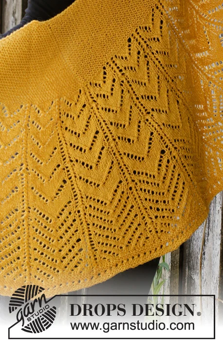 Strikket sjal med hulmønster og retstrik i DROPS Nord.