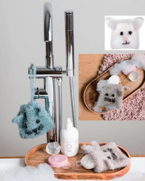 Dette fine hæfte indeholder således 3 versioner af praktisk sæbepose, som kan laves som en hare, en kat eller en mus.