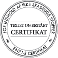 *Testet og bestået certifikat. For indhold af ikke skadelige stoffer. EN71-3 certifikat.