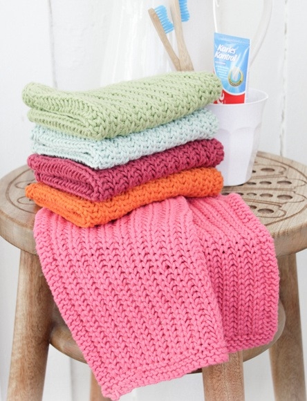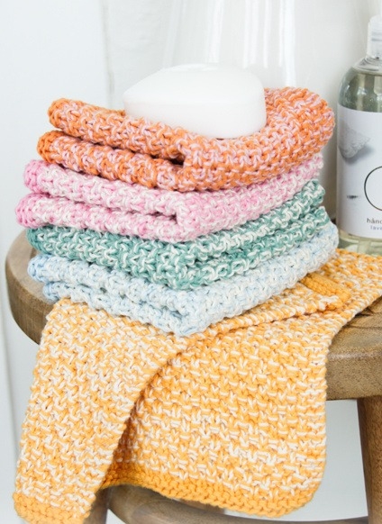 Et godt råd er at strikke dine klude lidt løst, eftersom de kan finde på at trække sig sammen i vask.