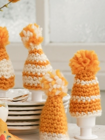Det er dejligt overskueligt at kaste sig ud i at strikke påskepynt eller -interiør. Om du drømmer om nye grydelapper eller påskepynt, så er det hurtige og små projekter. Derfor gør det ikke noget at være lidt sent ude. Hvis du vælger dine projekter med omhu, så er der rigelig mulighed for at nå at pynte sit hjem op i de traditionelle påskefarver. Blandt vores store garnudvalg finder du en lang række smukke nuancer af den påskegule farve.
