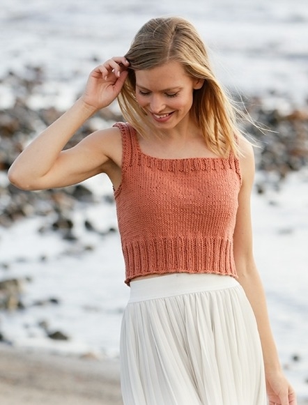 Hvis du ønsker at strikke en top til sommerbrug, anbefaler vi at strikke i bomuldsgarn. Det vil nemlig få toppen til at føles let og få huden til at ånde. Det bliver ikke noget problem at finde en opskrift, der benytter bomuldsgarn. De fleste af toppene i vores opskrifter er nemlig strikket i bomuld.