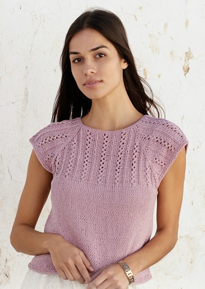 I udvalget af opskrifter finder du også denne smukke “Siempre Celeste” top. Den har en smuk form og strikkes med flot bølgemønster. Vælg for eksempel en flot pastelfarve som på billedet eller gå med en mere kraftig farve. Valget er helt op til dig :-)
