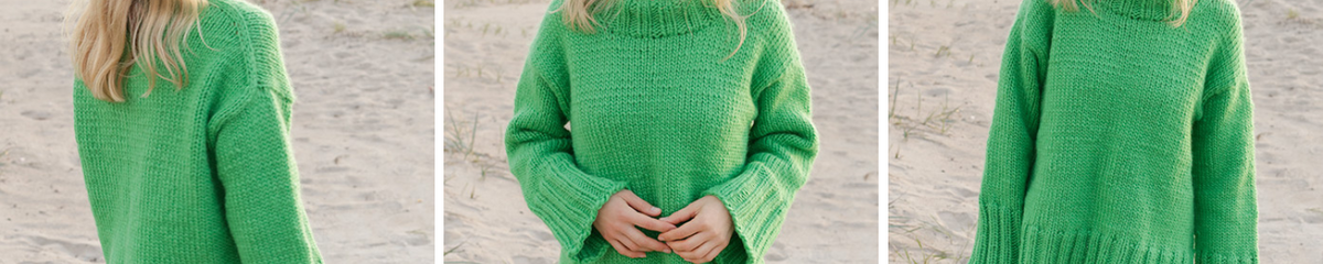 Strikket damesweater: Når man skal i gang med at strikke sin første sweater, så er det vigtigt at strikke i et tykt garn. På den måde kan man nemt se maskerne, så det bliver nemmere at gøre resultatet pænt og ensartet. Her har vi fundet en lækker og chunky sweater fra DROPS kaldet Dreams of Ireland. Den er strikket i DROPS Snow, som er et lækkert uldgarn. Til sweateren kommer desuden også videoer, der kan hjælpe dig med at få teknikken helt på plads. Find opskriften her.