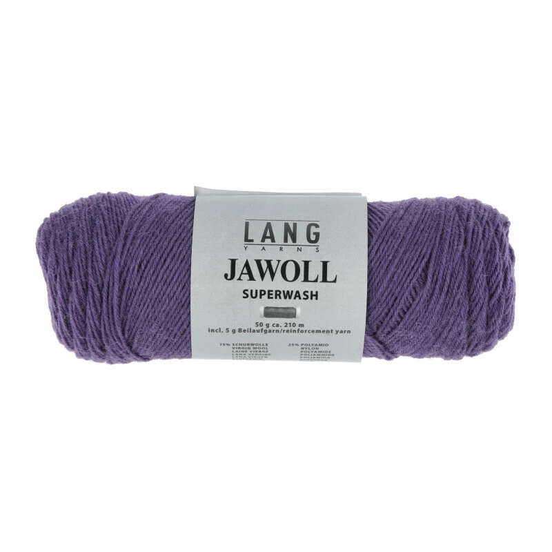 Lang Yarns Jawoll består af 75% virgin uld og 25% polyamid. Dette klassiske strømpegarn fås i mere end 80 forskellige farver og er lavet af høj kvalitets uld fra Patagonien i Chile. Ulden er blød, let og behagelig at have på, og garnet er meget modstandsdygtigt overfor pilling (knudedannelse). Hvert garnnøgle indeholder desuden en spole med 5 gram forstærkningsgarn for at styrke hæle og tæer i strømperne, hvilket gør det til et ideelt valg for holdbare strikkeprojekter.