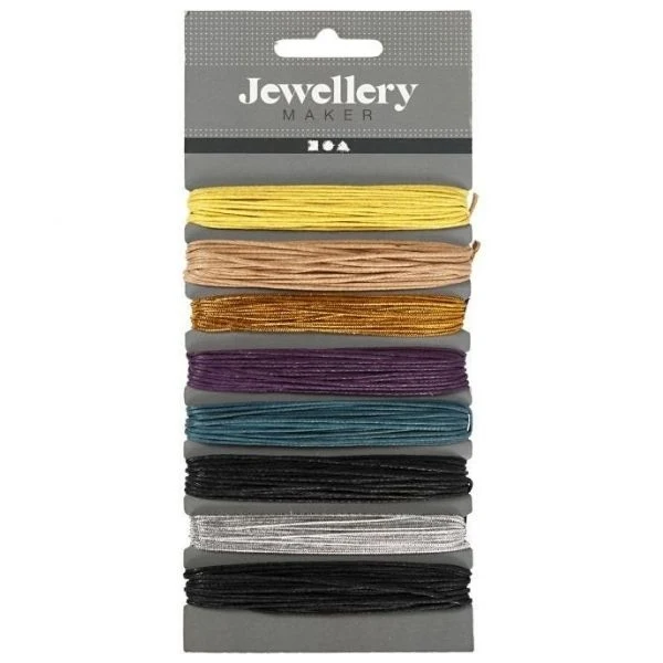 Indeholder 8 forskellige farver bomuldsnor af 5 m.
