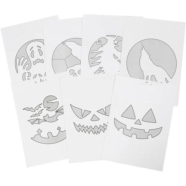 Find inspiration i de syv uhyggelige design, der medfølger sættet.