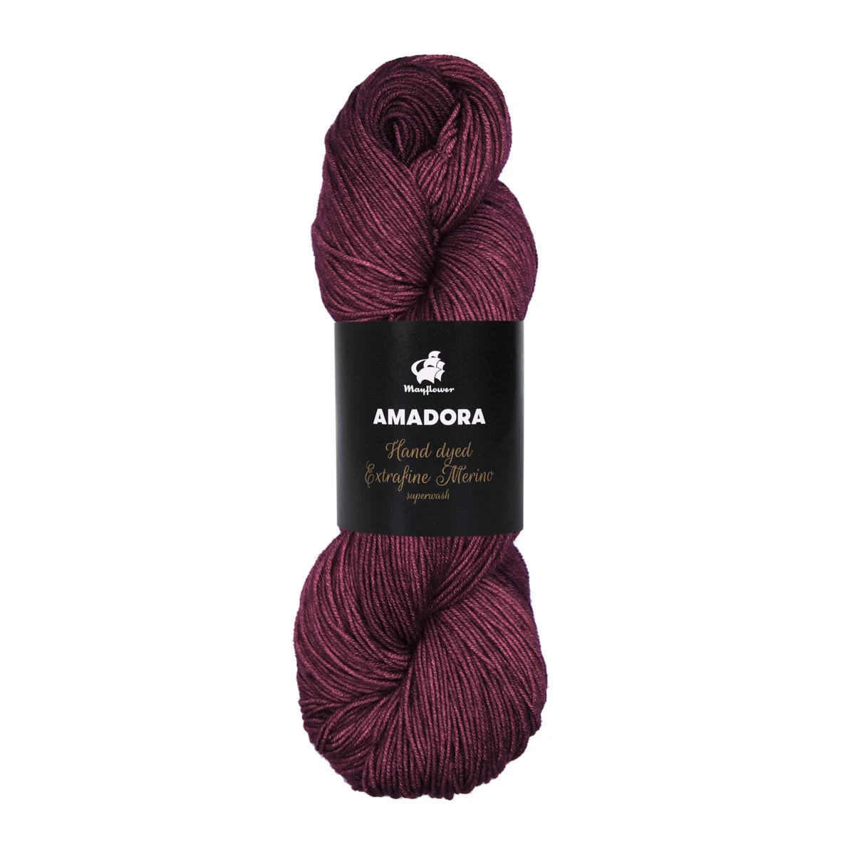 Mayflower Amadora er et luksuriøst håndfarvet garn af ekstrafin merinould. Det er blødt og har smukke, dybe nuancer, der skaber en unik farvedybde. Garnet er ideelt til både strikning og hækling, og dets elasticitet giver flotte og jævne maskemønstre.